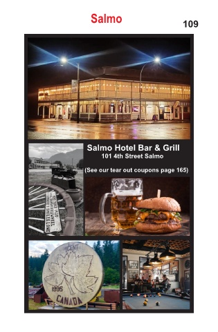 Salmo 109 Salmo Hotel Bar & Grill 101 4th Street Salmo 175 (See our tear out coupons page 165)