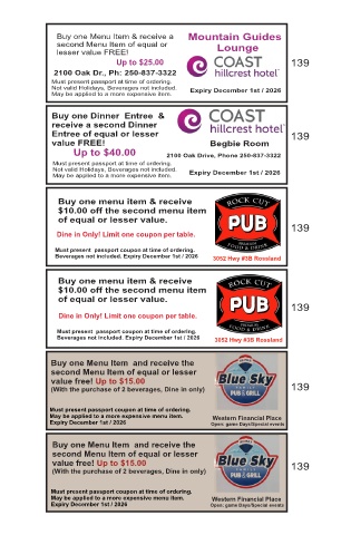 Beverages not included. Expiry December 1st / 2026 3052 Hwy #3B Rossland