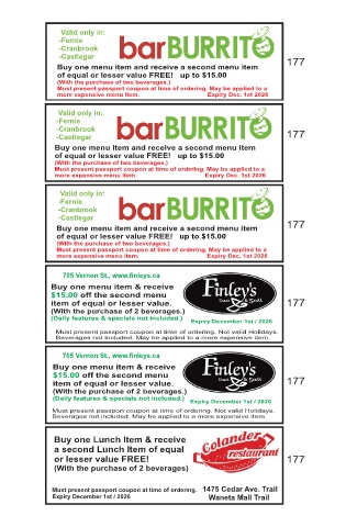 Must present passport coupon at time of ordering. 1475 Cedar Ave. Trail