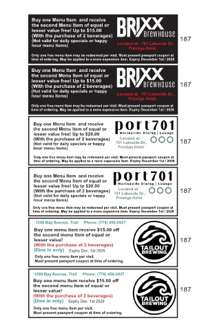 (Not valid for daily specials or happy 701 Lakeside Dr.,