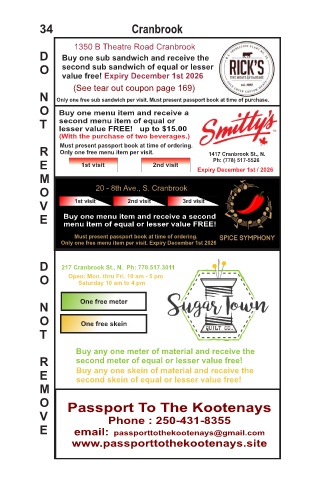 N Only one free sub sandwich per visit. Must present passport book at time of purchase.