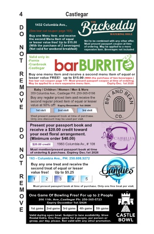 E See tear out coupon page 177. Must present passport coupon at time of ordering.