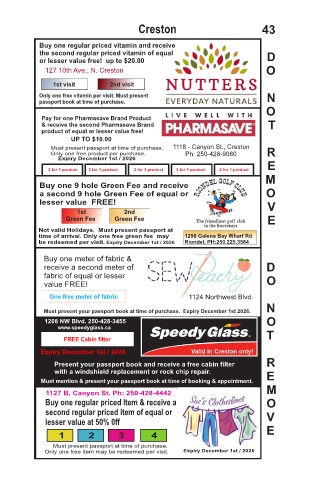 Must present passport at time of purchase. 1118 - Canyon St., Creston