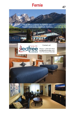 Fernie 47 RED TREE LODGE IN FERNIE BC Resort Hotel in the Canadian Rockies Contact us! Phone: 1-250-423-4622 info@redtreelodge.com 1101 7th Avenue Fernie BC