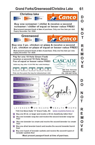 Only one free green fee may be redeemed per visit. Ph: 250-447-9705