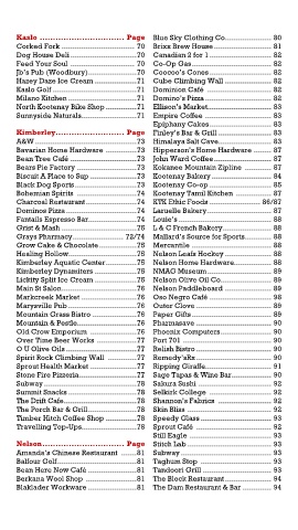Biscuit A Place to Sup ..................... 73 Kootenay Bakery ........................... 84